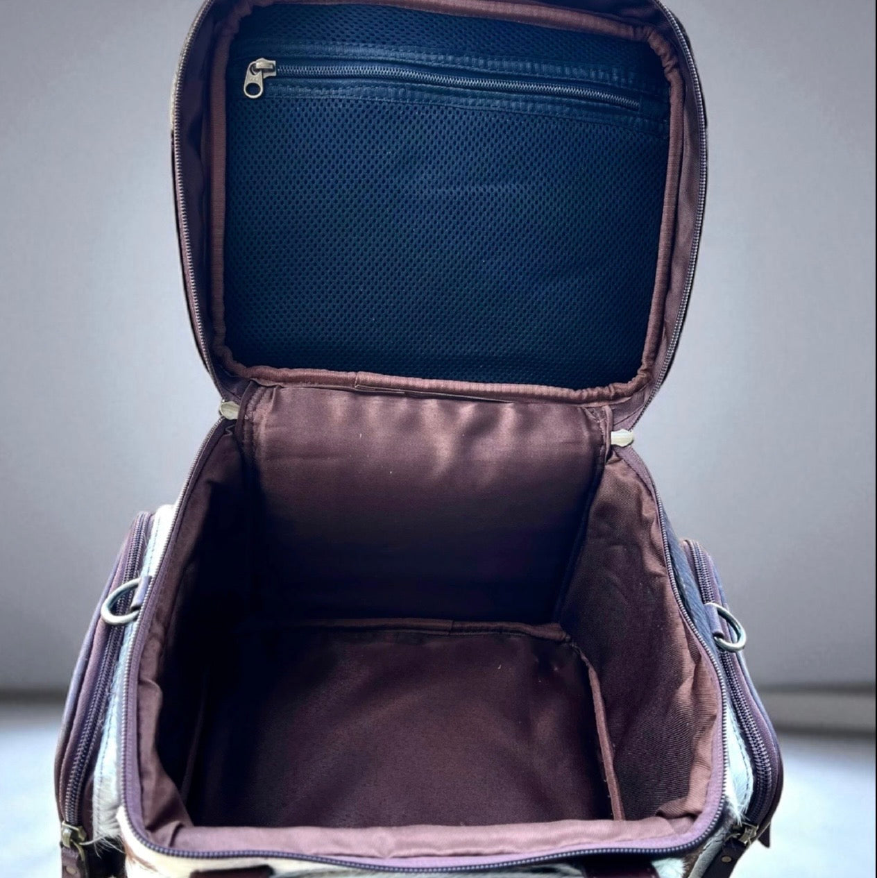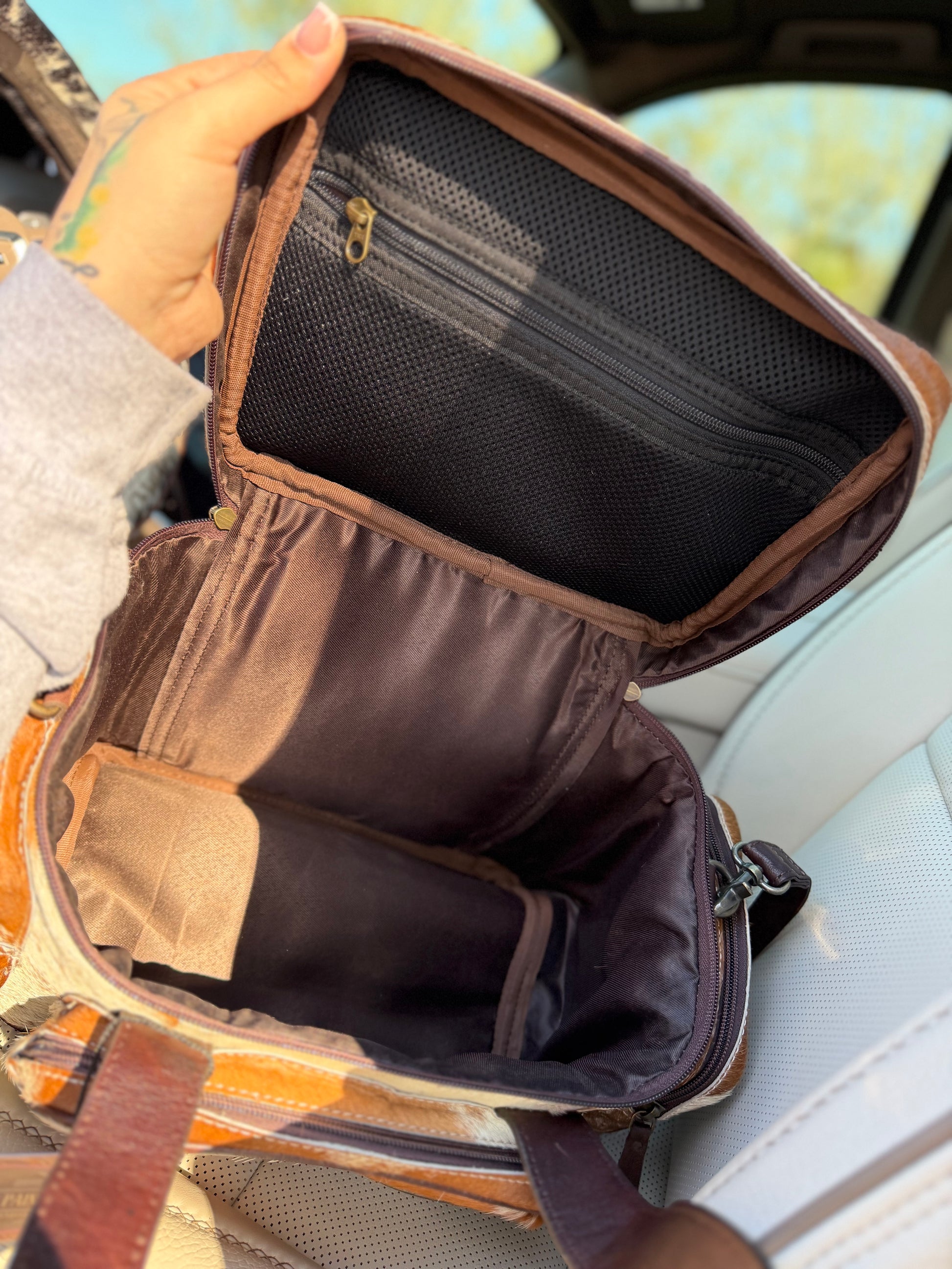 Brown and white hide TOOLED leather/ cowhide Lunchbox