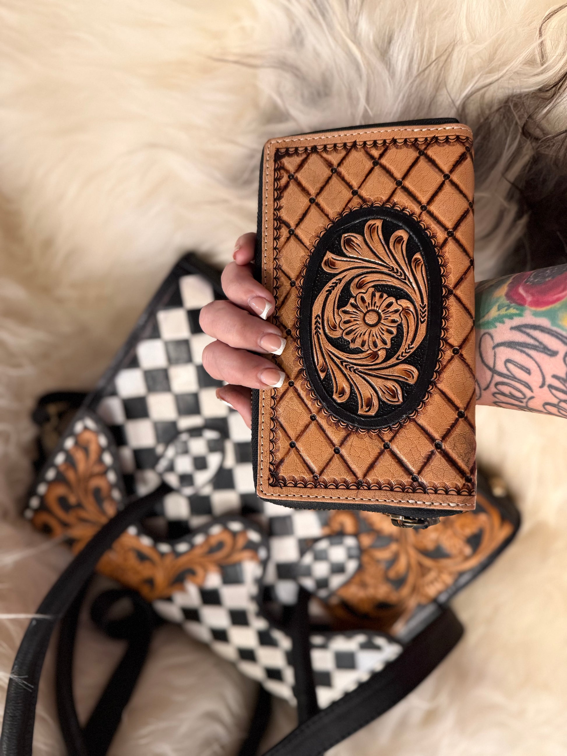 Checker tote and wallet combo! 13”x9”