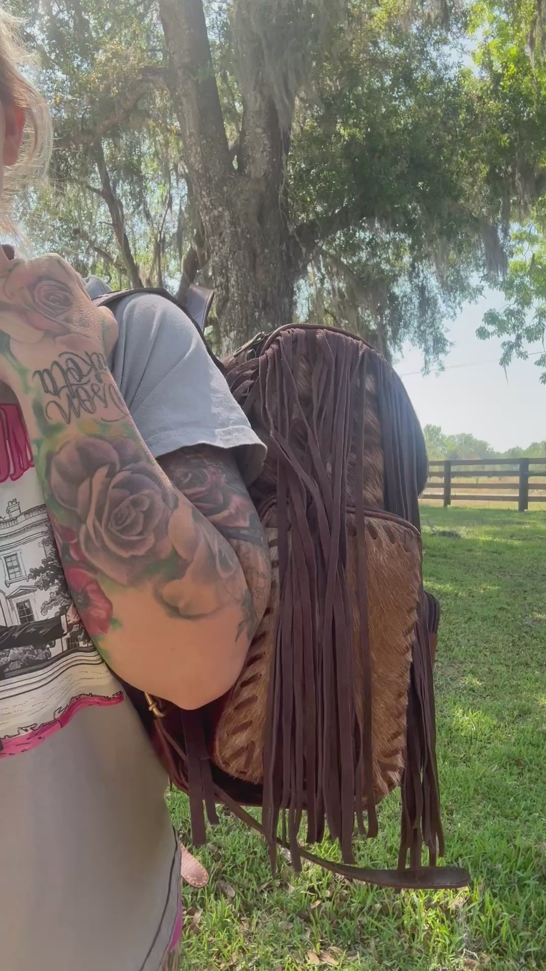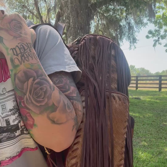 Engraved bookbag with fringe