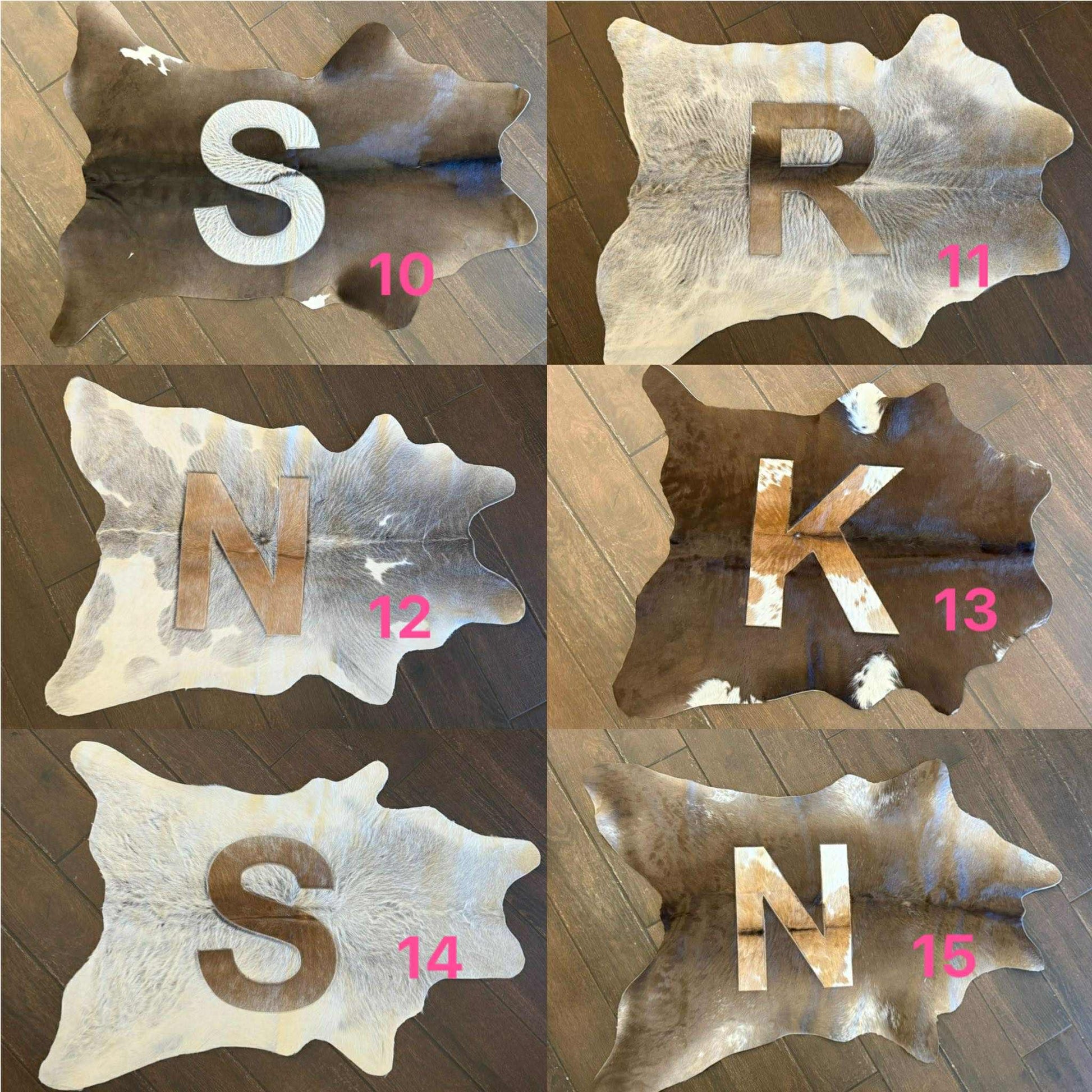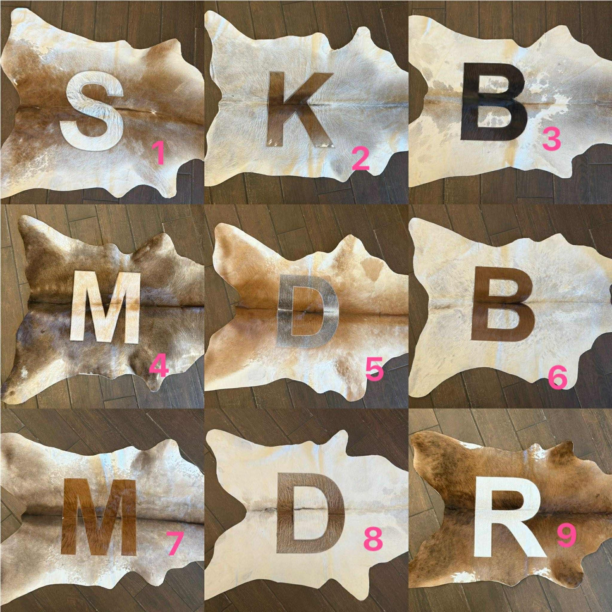 Letter calf hides roughly 41”