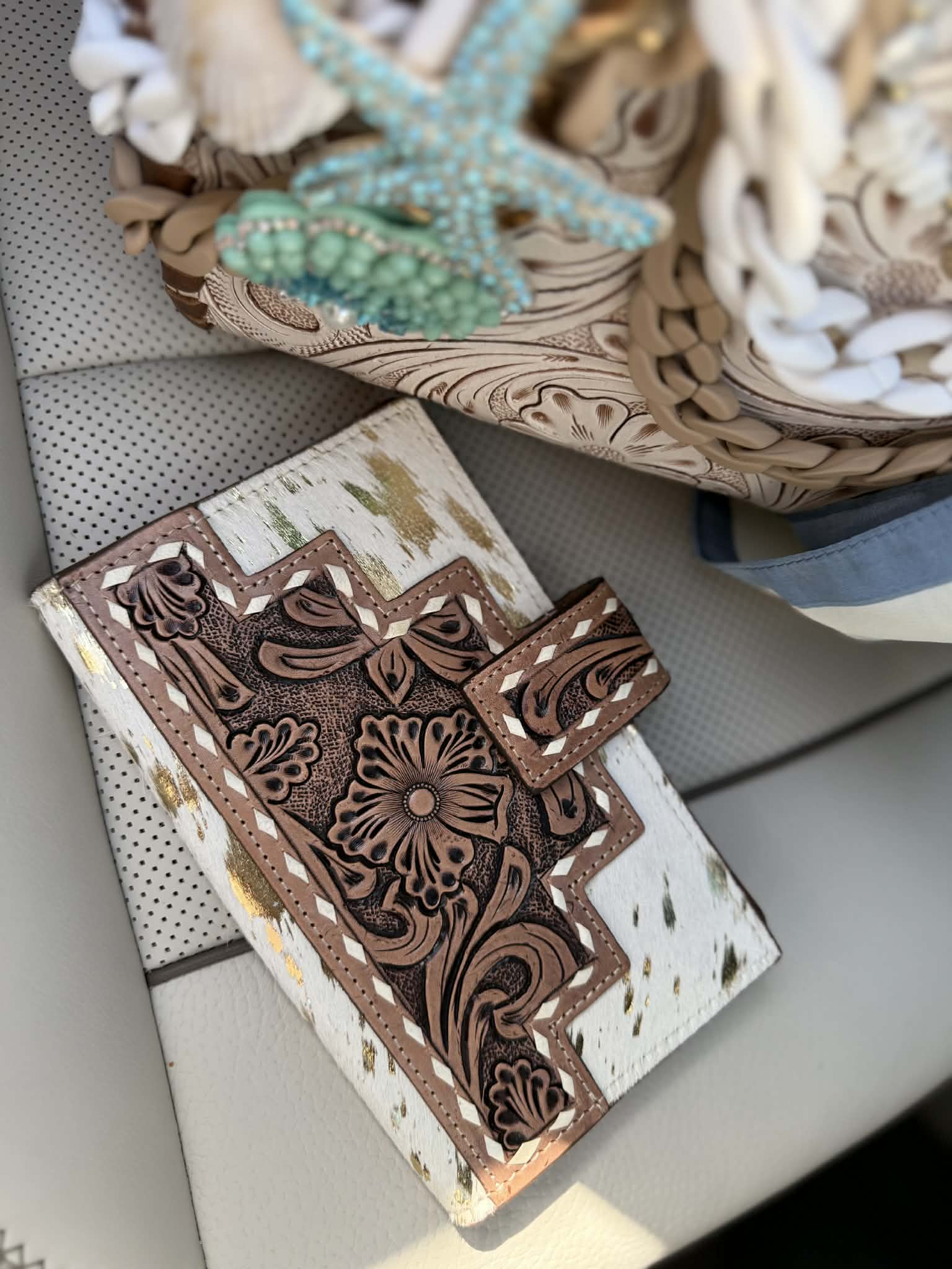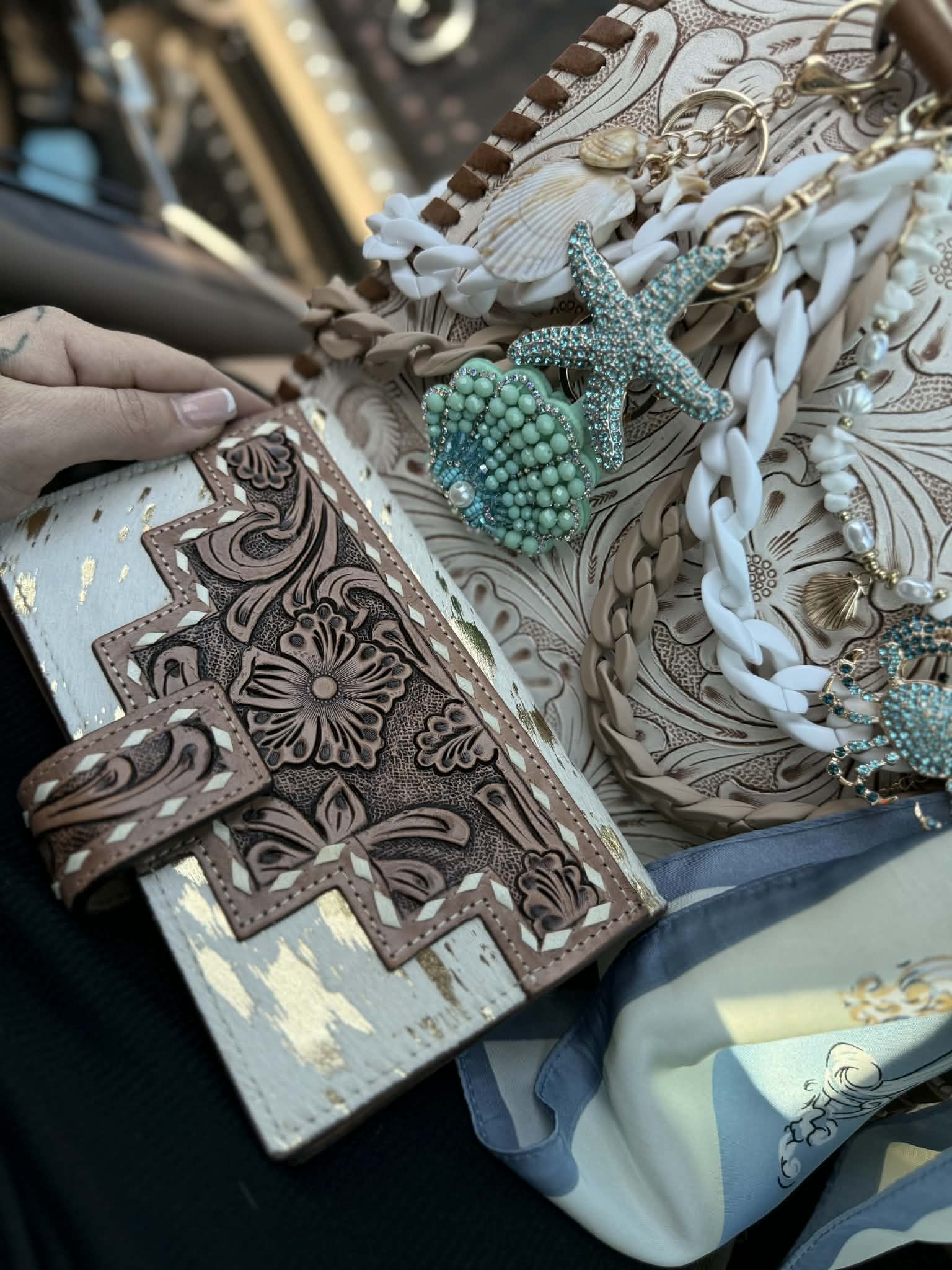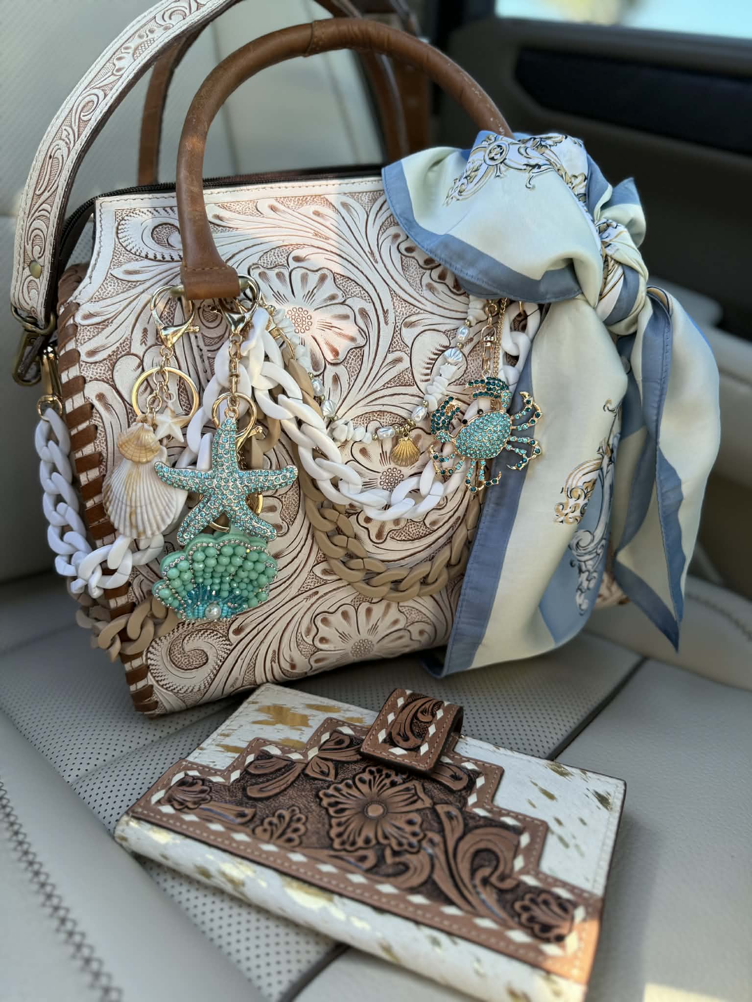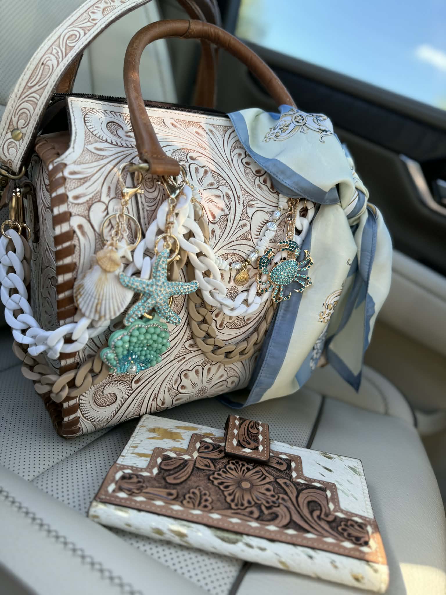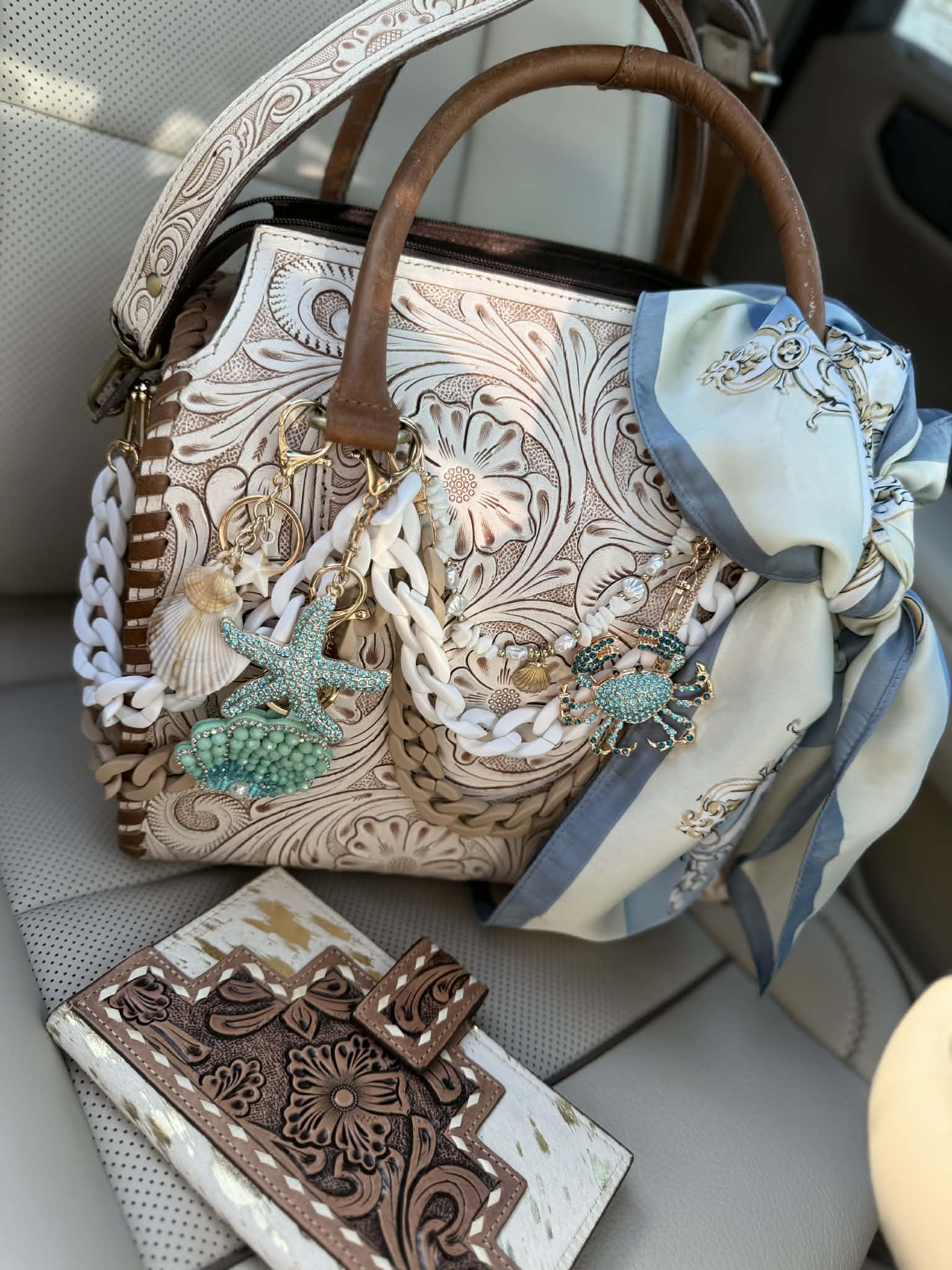 "Serenity by the Sea" - white tooled leather speedy (L)