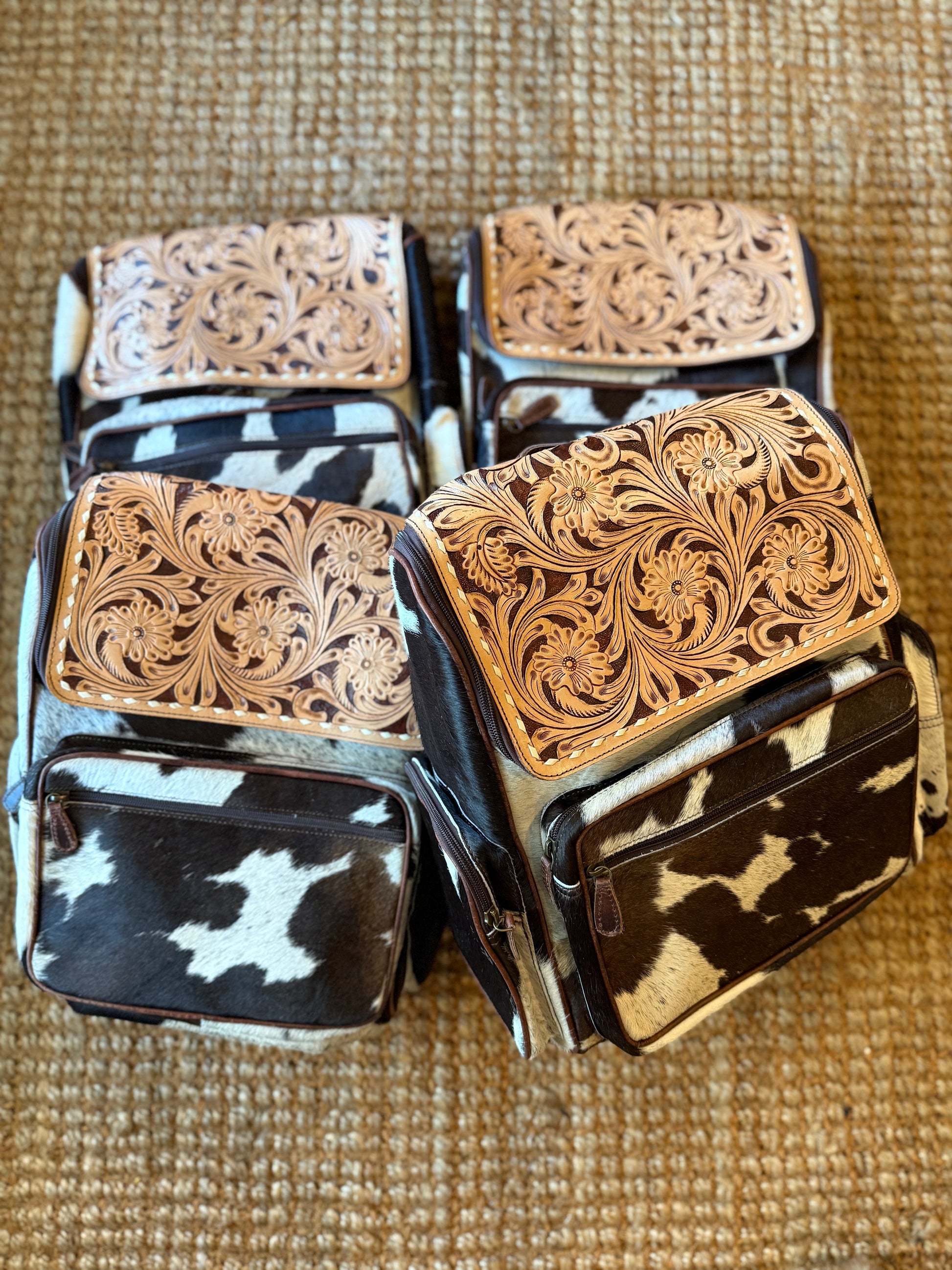 Tooled leather bookbag brown leather