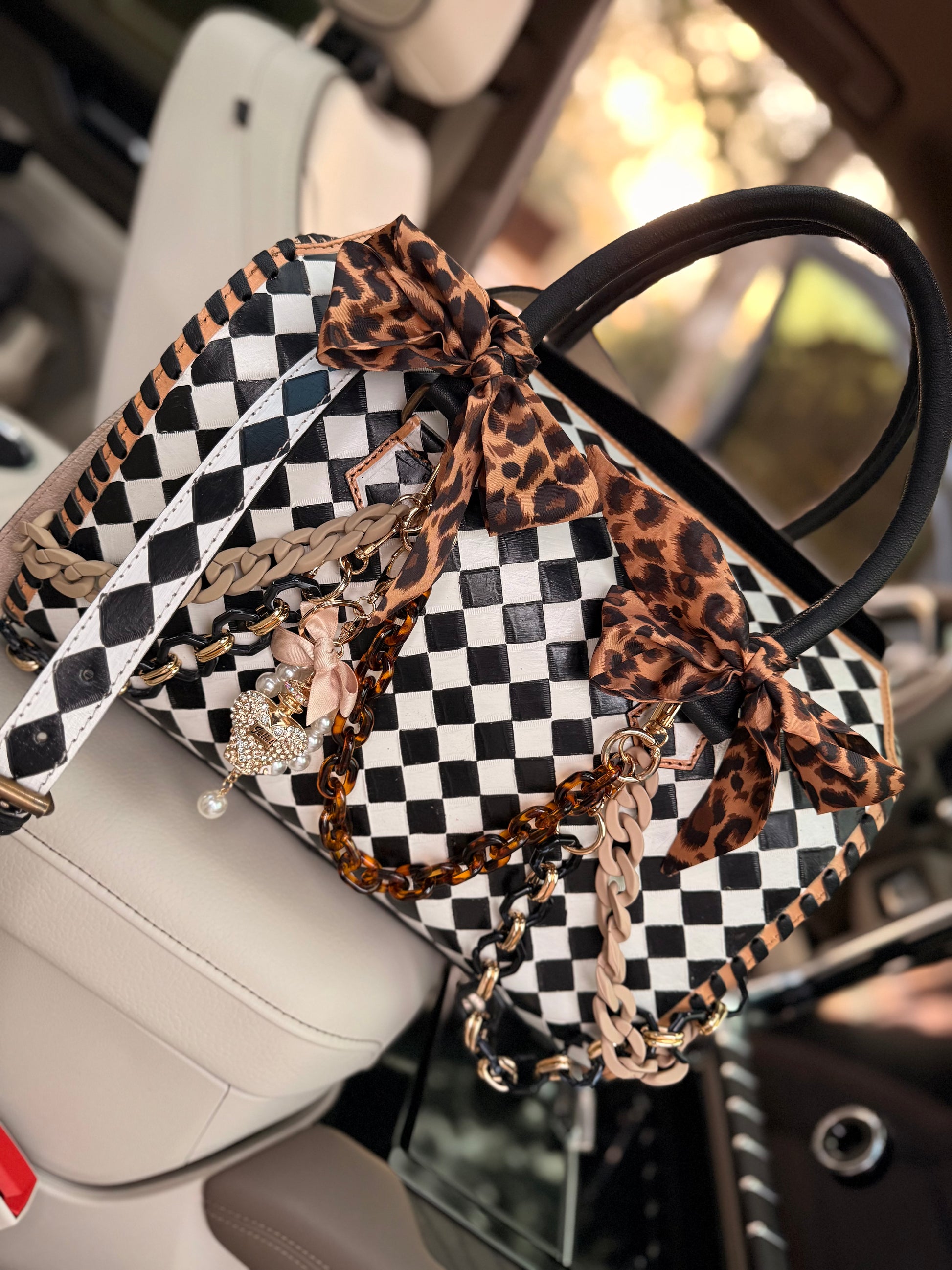 Duffle size - Black and white check tooled leather speedy bag